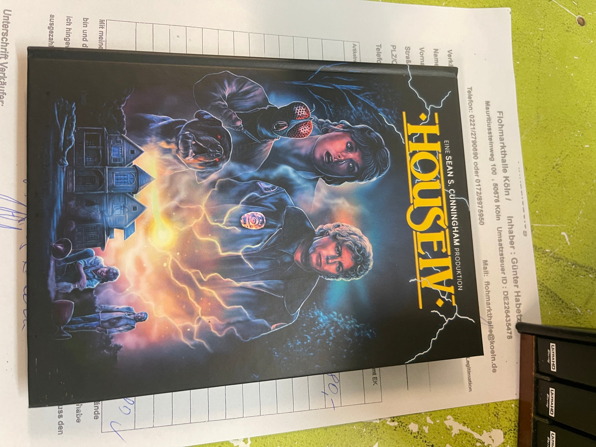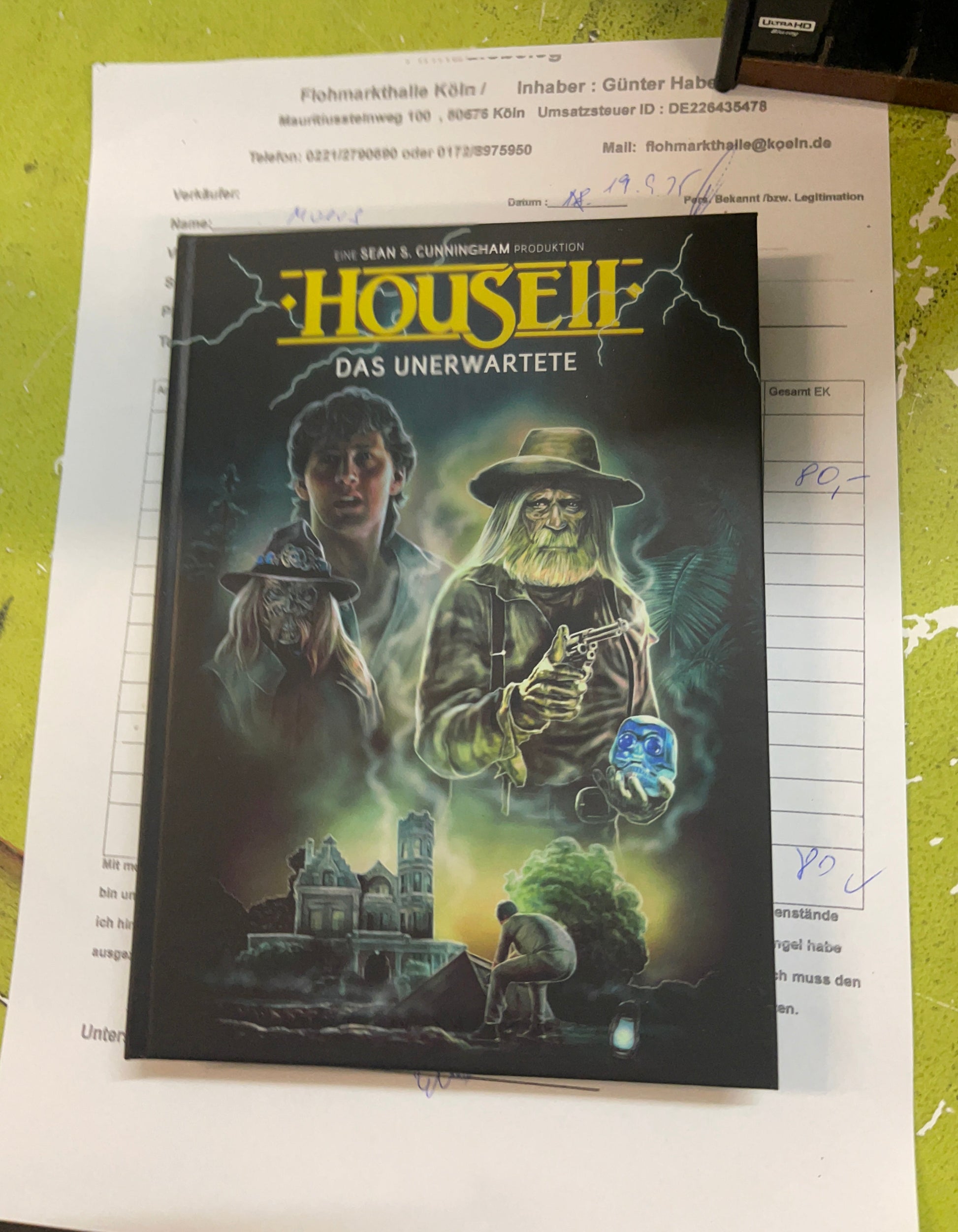 - Lederschuber für 5 Mediabooks, schwarzes Kunstleder, Tief- und Farbprägung, ca. 23x18x10,8cm - Artworks von Ralf Krause HOUSE 1 - Interview mit Regisseur Steve Miner (Englisch mit optionalen deutschen & englischen Untertiteln) - Interview mit Drehbuchautor Fred Dekker (Englisch mit optionalen deutschen & englischen Untertiteln) - Interview mit Story-Board-Künstler Doug Lefler (Englisch mit optionalen deutschen & englischen Untertiteln) - The Making Of House (Englisch mit optionalen deutschen & englischen Untertiteln) - Vintage Making Of (Englisch mit optionalen deutschen & englischen Untertiteln) - Originalteaser - Trailer 1 - Trailer 2 - TV- Spots HOUSE 2 - The Unlikeliest Franchise - Opening The Door To House (1/2) (Englisch mit optionalen deutschen & englischen Untertiteln) - Interview mit Darstellerin Devin Devasquez (Englisch mit optionalen deutschen & englischen Untertiteln) - Interview mit Cutter Martin Nicholson (Englisch mit optionalen deutschen & englischen Untertiteln) - Vintage Making Of (Englisch mit optionalen deutschen & englischen Untertiteln) - DeutscherTrailer - Originaltrailer - TV- Spot HOUSE 3 - US-Theatrical Cut (94min) [technische Daten identisch mit dem Hauptfilm] - Slice and Dice: The Slasher Film Forever [ca. 77min] (Englisch mit optionalen deutschen & englischen Untertiteln) - Behind the Scenes Footage (Englisch ohne Untertitel) - Originaltrailer (1:1,33) - Originaltrailer (1:1,78) - Originaltrailer (1:1,85) - Workprint Trims HOUSE 4 - The Unlikeliest Franchise - Opening The Door To House (2/2) [ca. 48min] (Englisch mit optionalen deutschen & englischen Untertiteln) - Interview mit Jim Wynorski (Englisch mit optionalen deutschen & englischen Untertiteln) - Interview mit Produzent Sean S. Cunningham (Englisch mit optionalen deutschen & englischen Untertiteln) - Interview mit Darsteller Willliam Katt (Englisch mit optionalen deutschen & englischen Untertiteln) - Originaltrailer""