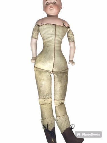 Antike Bisque-Puppe / Porzellankopf – Ledertorso – Kompositionsglieder